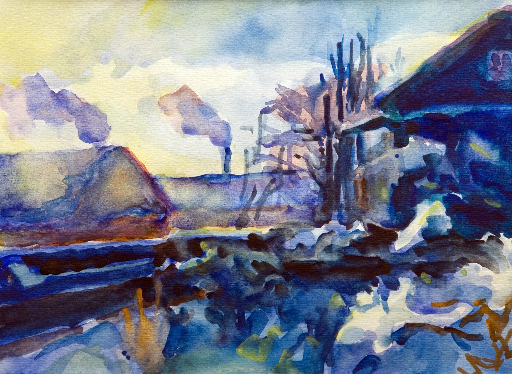 «Зима», торшон, акварель, 21 х 30 см, 1993 г.