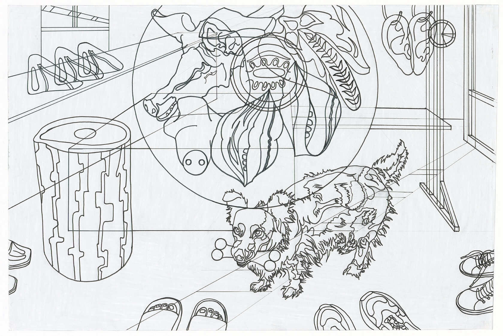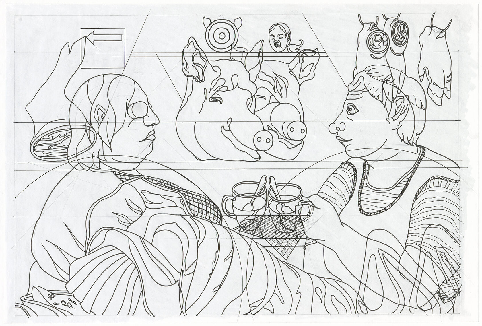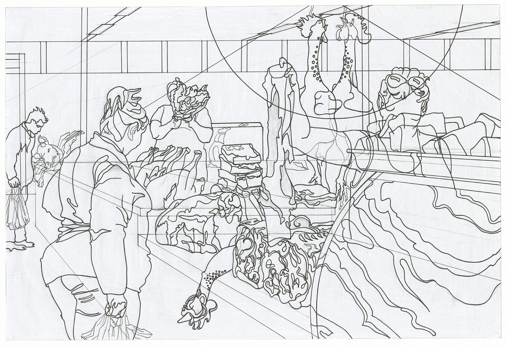 «Рынок», бумага, карандаш, линер, 30,5 х 45,5 см, 2022 г.