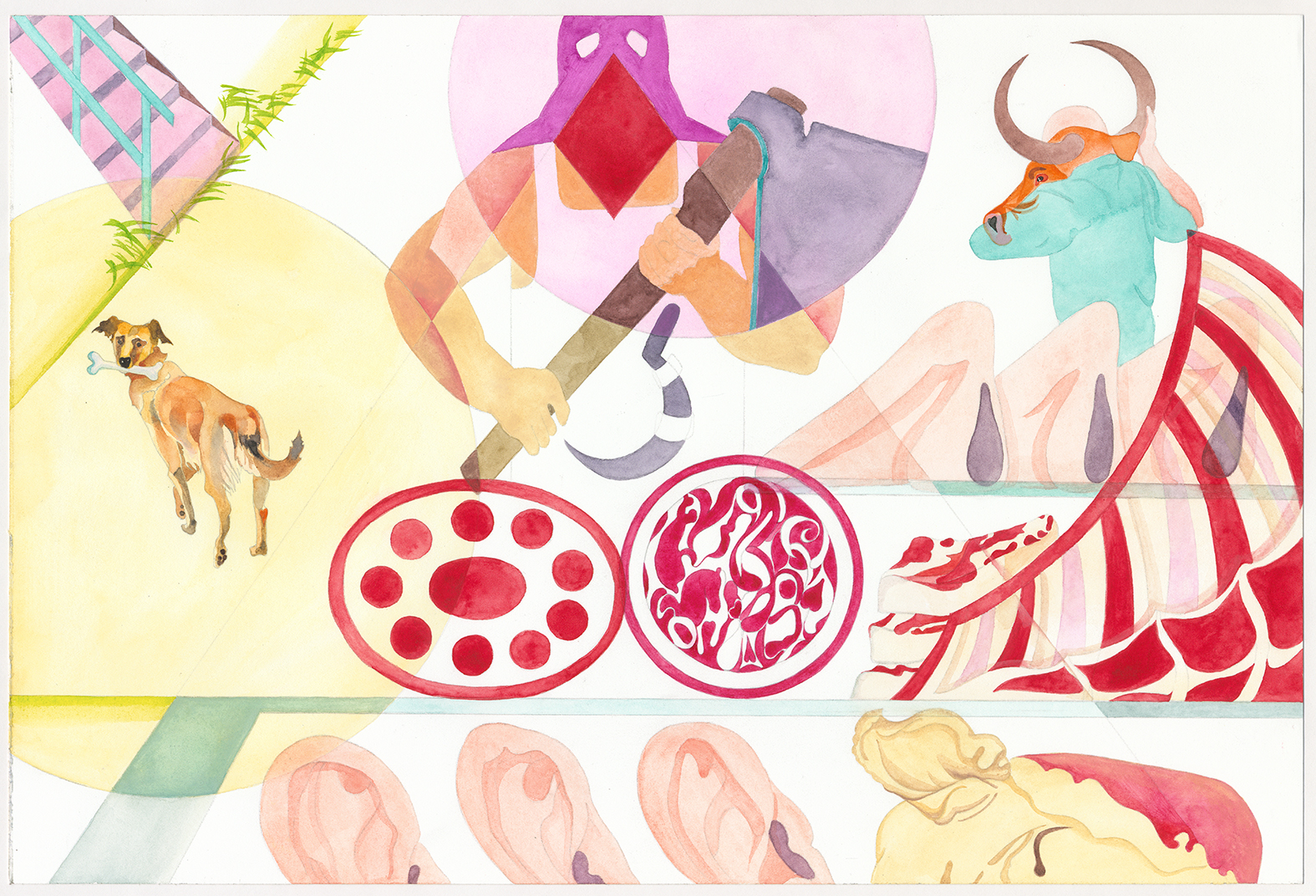 Здесь же происходила разделка туш — ритуал, наполненный скорее человечностью и благодарностью к животному, чем жестокостью и сентиментальным презрением. Подтверждением служили мягкие игрушки и иконы, которыми мясники украшали прилавки. В своем эссе «Животные: территория и метаморфозы» Жан Бодрийяр пишет: «На смену насилию жертвоприношений, которое выступает насилием «близости», «интимности», пришло … насилие, которое является насилием отдаления друг от друга».