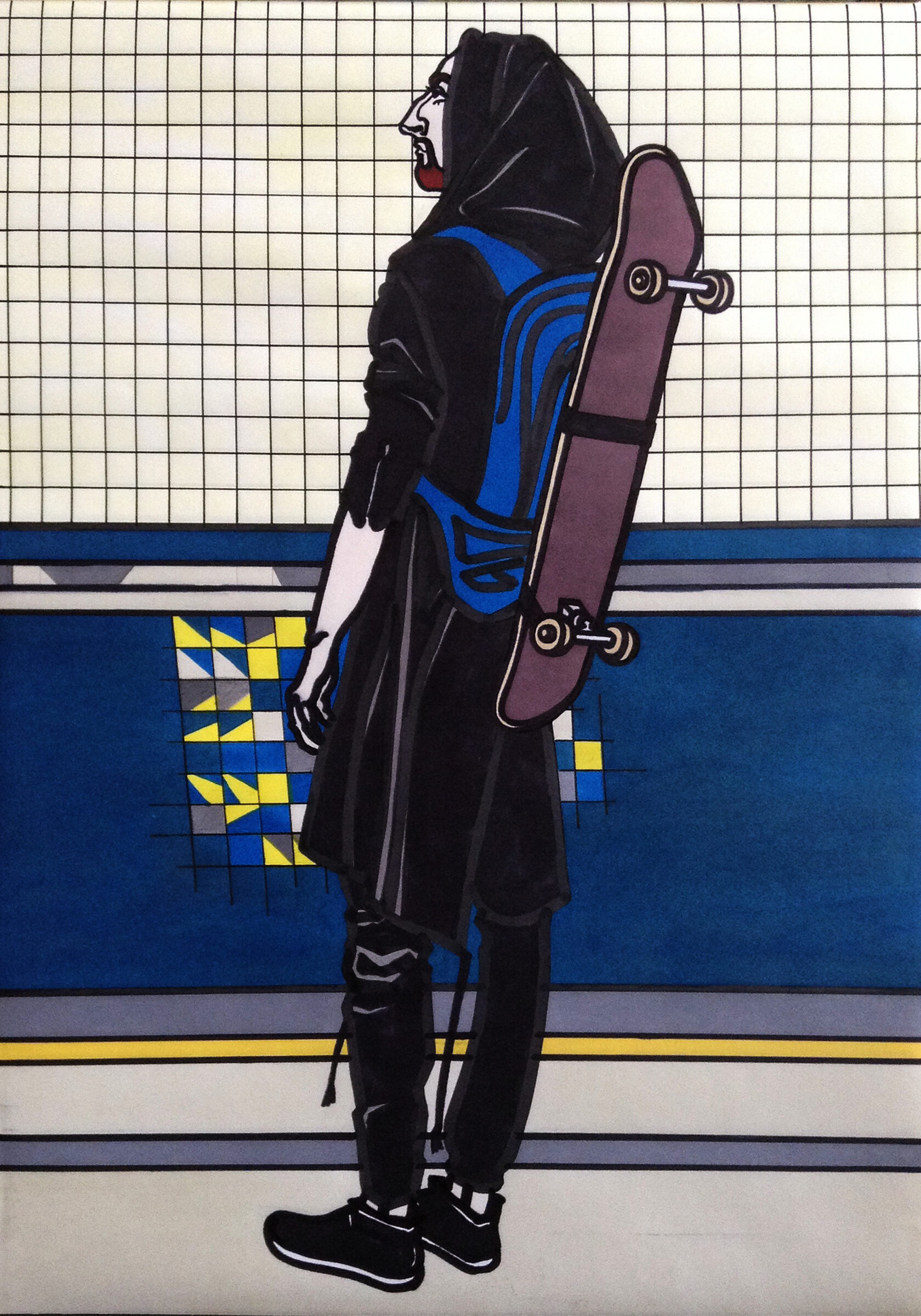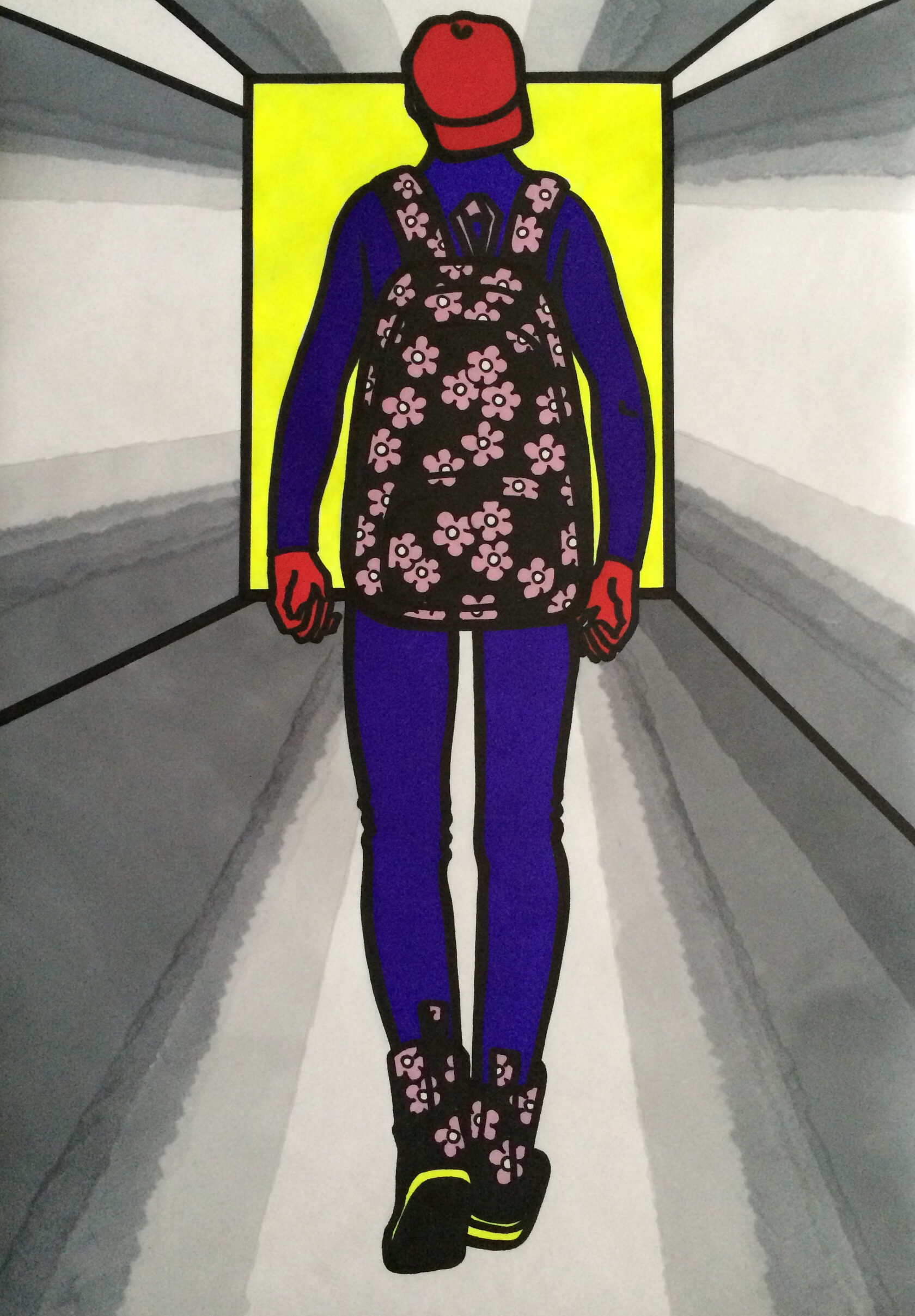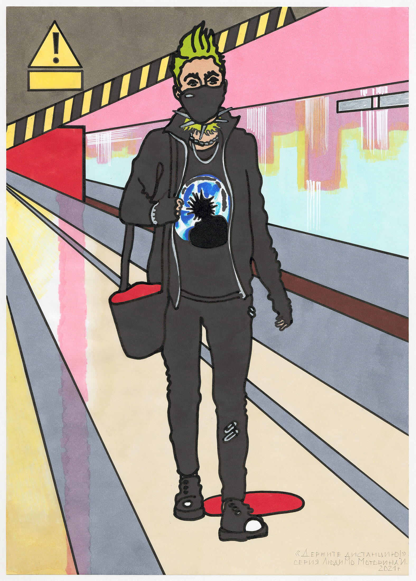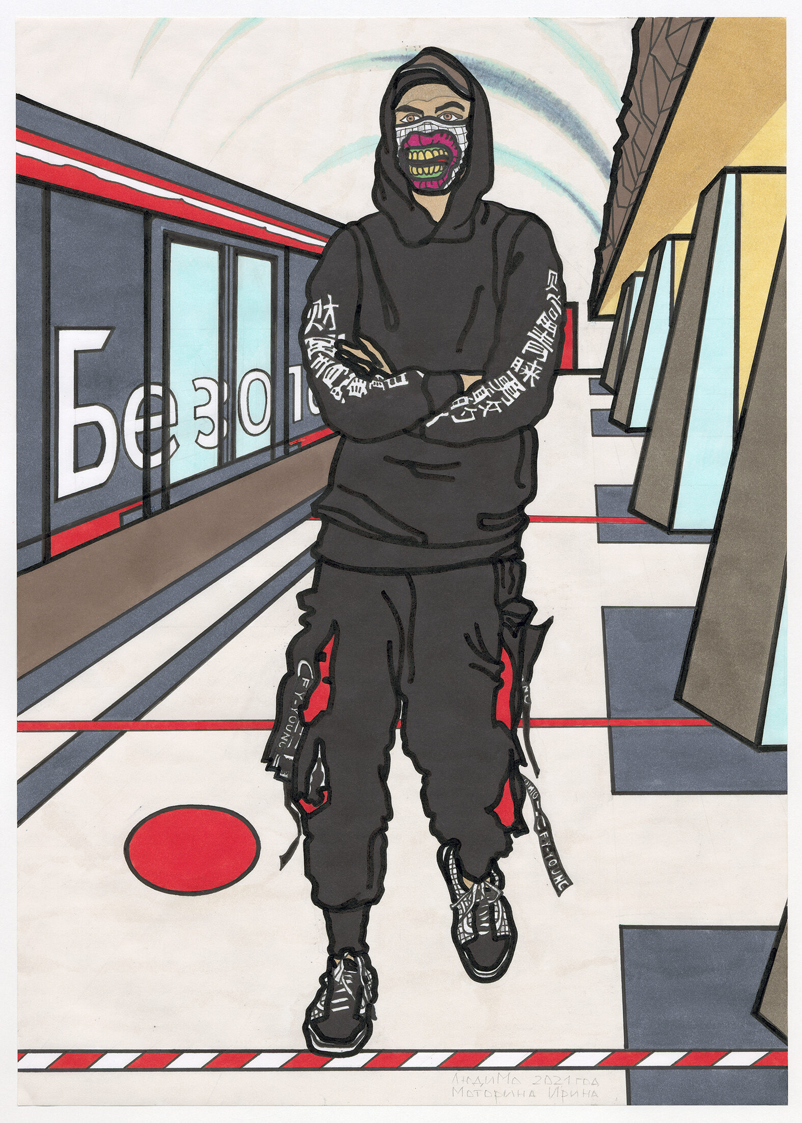«В переходе», бумага, спиртовые маркеры, 42 х 30 см, 2018 г.