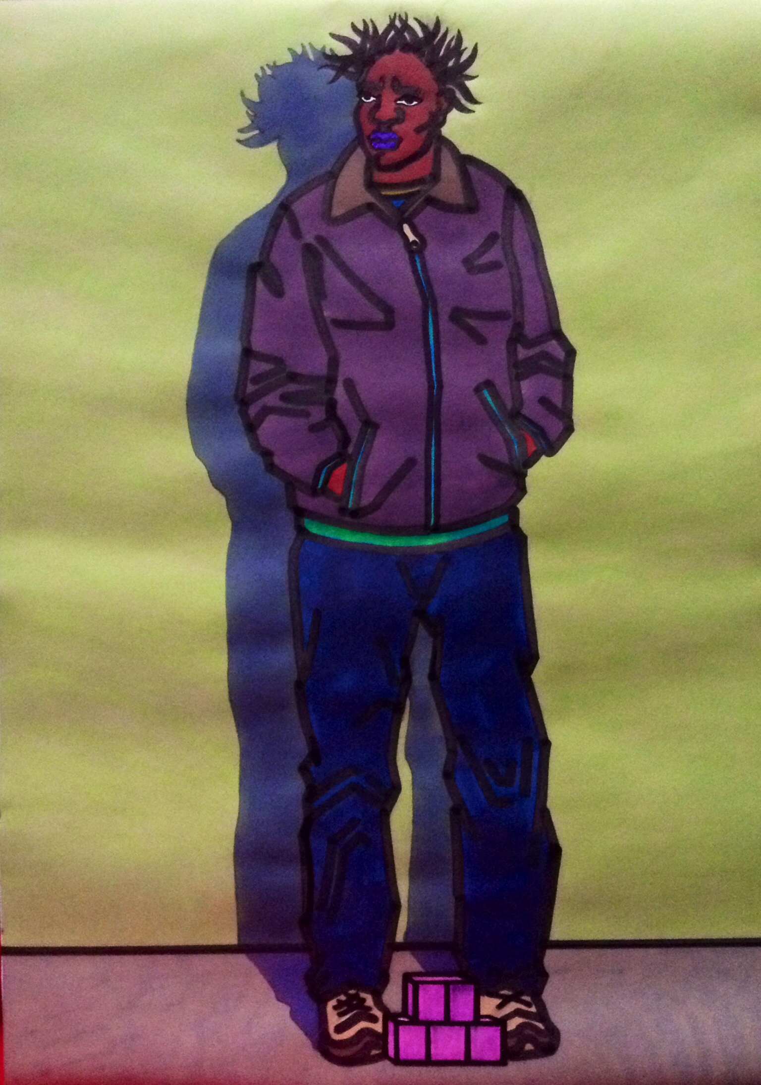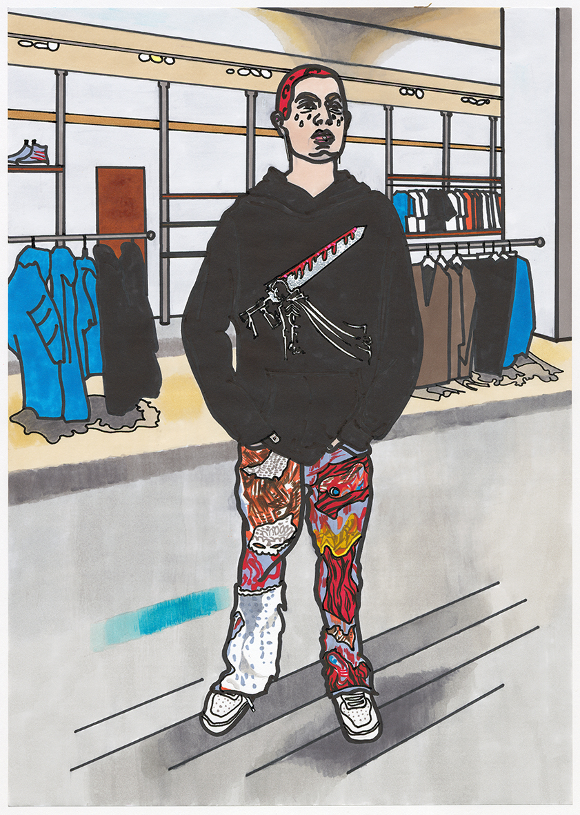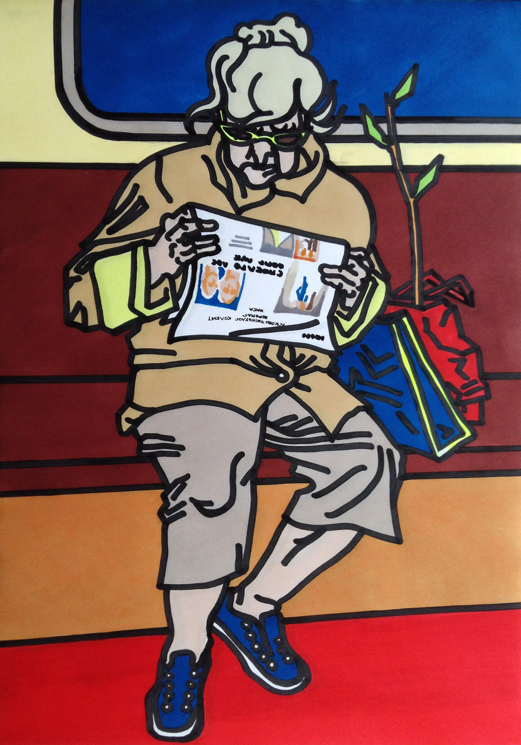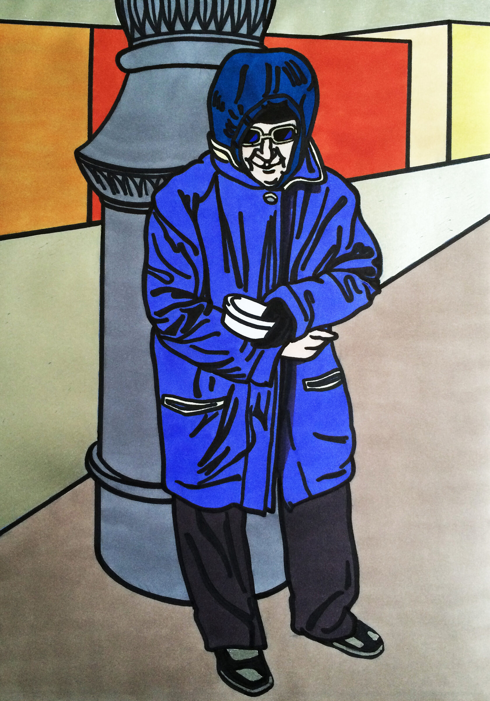 «В переходе», бумага, спиртовые маркеры, 42 х 30 см, 2018 г.